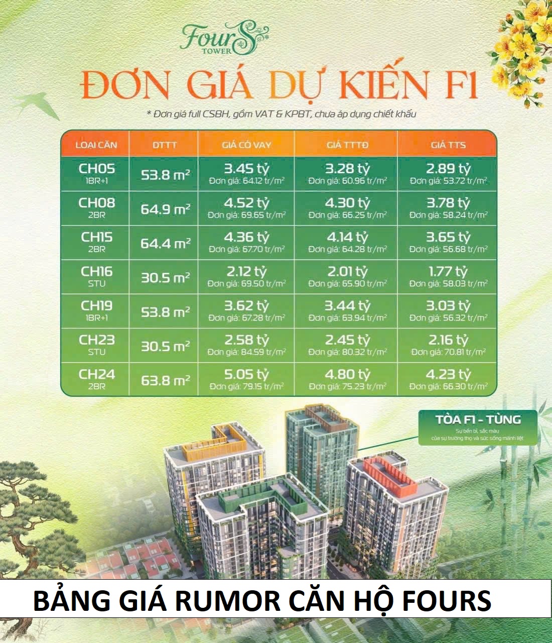 GIÁ BÁN CĂN HỘ FOURS TOWER VÀ CHÍNH SÁCH TỪ CĐT