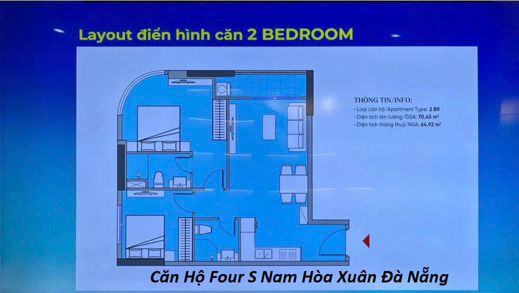 Căn 2 phòng ngủ FourS Đà Nẵng tại căn hộ FourS Tower là lựa chọn hoàn hảo cho gia đình trẻ hoặc khách hàng cần không gian sống rộng rãi, tiện nghi tại khu vực Nam Hòa Xuân. Với thiết kế hiện đại và công năng tối ưu, đây là dòng sản phẩm được ưa chuộng nhất tại dự án.